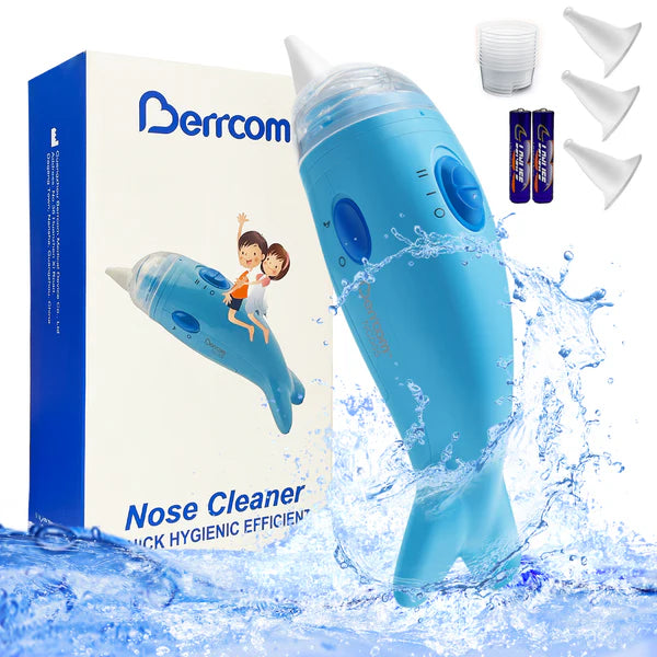 Berrcom Næsesuger til Baby – Elektrisk næsesuger til småbørn med 3 silikonespidser, automatisk næserenser til børn